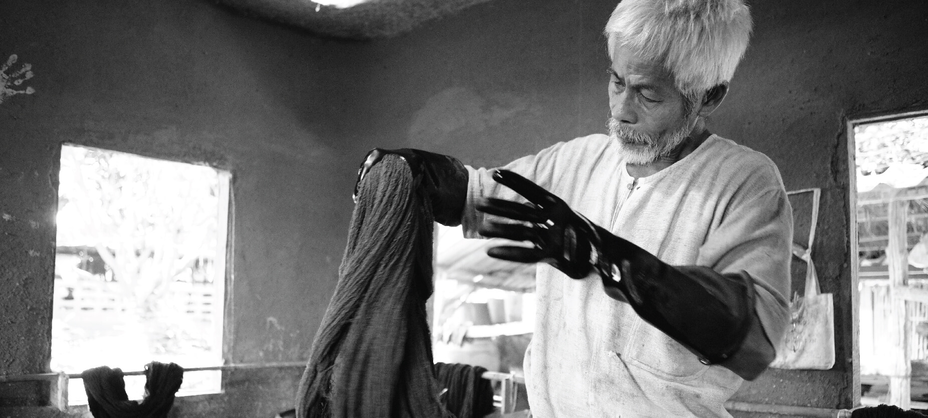 "Kraam or indigo dyeing is a mixture of art, science, and the strength to overcome the fear of failure. Even though there is a defined formula for dyeing, if you fail to put your heart and soul into the task, you may not always get the result you want. In the initial years when I first began kraam-dyeing, countless experimentations resulted in failures. Kraam ran away from me, time and time again. But I never gave up. In the end Kraam stayed. And it has stayed with me till this day. Now I know its secrets. I understand its nature and the exact formula needed for dyeing to get the result I desire”.